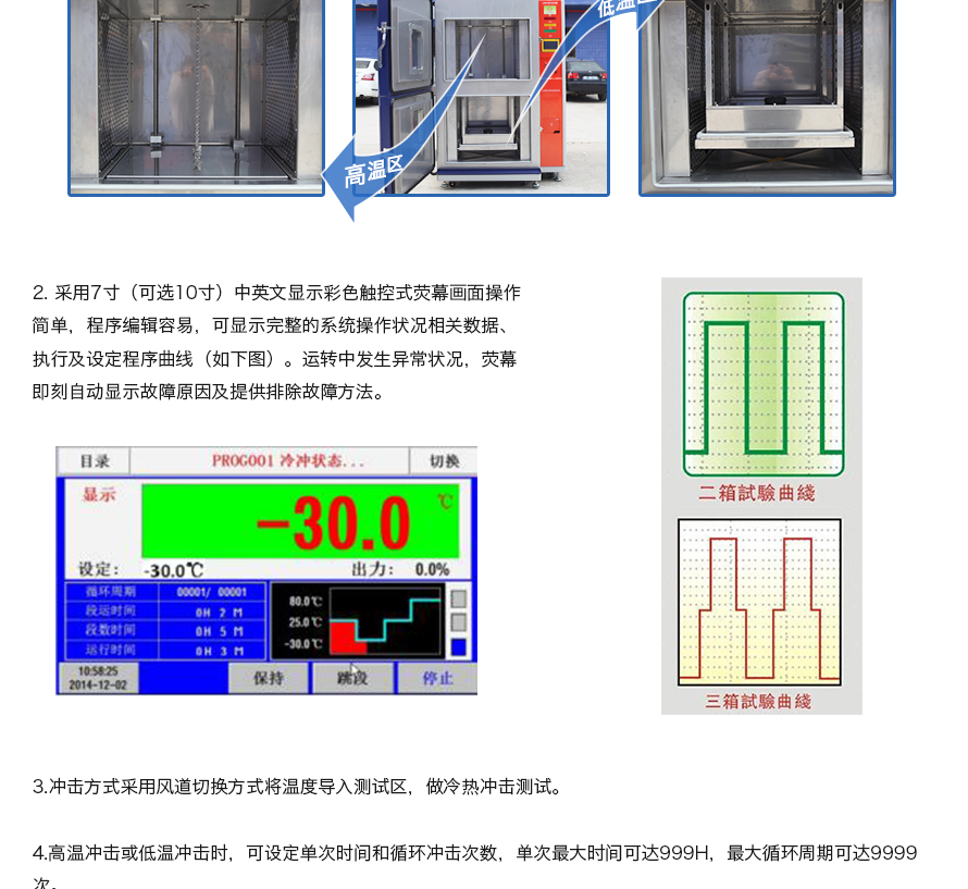 產(chǎn)品型號(hào):JQTS2-408 品牌:劍 喬 用途:兩箱式冷熱沖擊試驗(yàn)箱又名溫度沖擊試驗(yàn)箱或高低溫沖擊試驗(yàn)箱是用于考核產(chǎn)品對(duì)周圍環(huán)境溫度急劇變化的適應(yīng)性,裝備設(shè)計(jì)定型的鑒定試驗(yàn)和批產(chǎn)階段的例行試驗(yàn)中不可缺少的